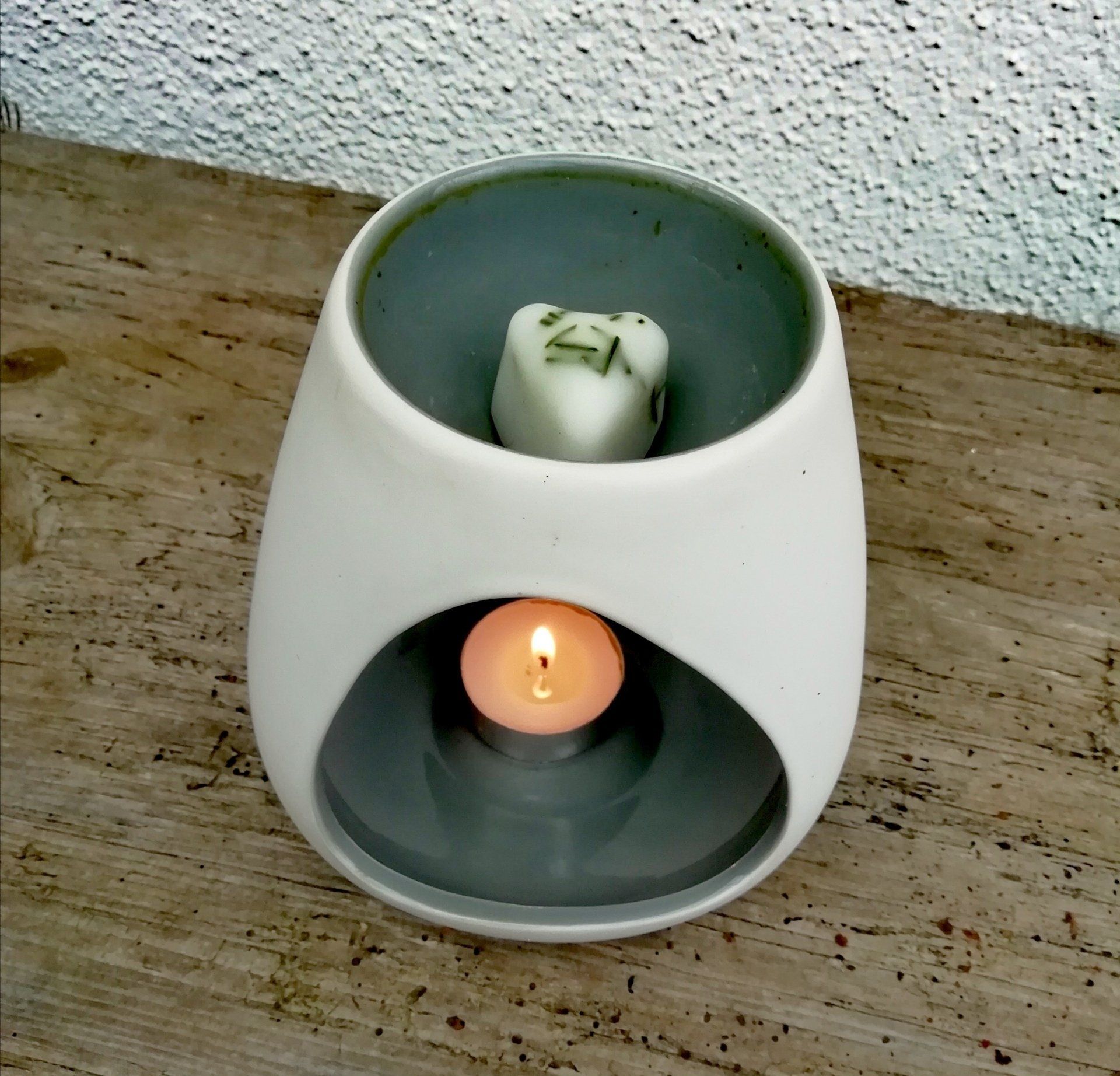 Nun kannst Du den Duftmelt in die Duftlampe geben. Durch das Teelicht schmilzt er und beduftet den Raum.
