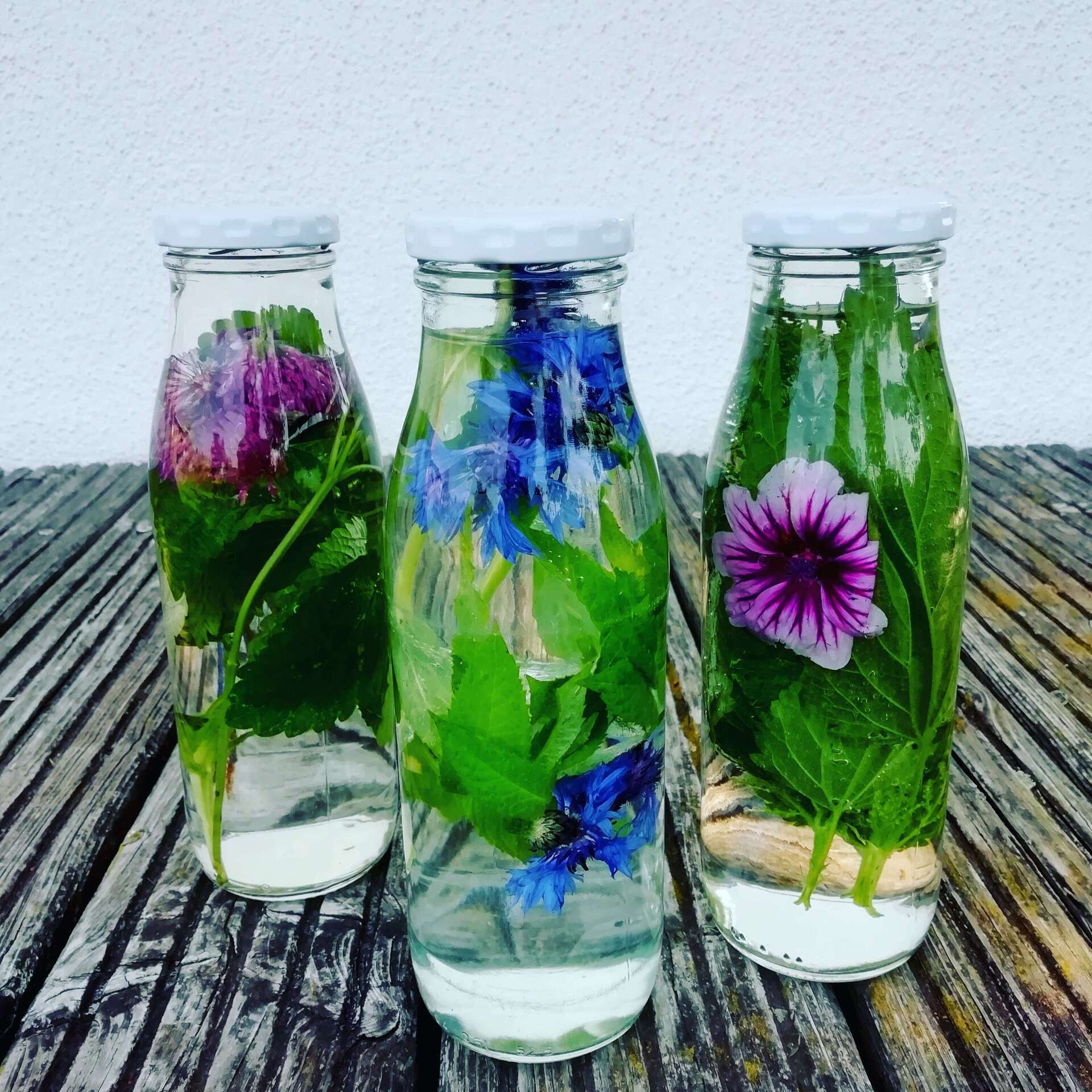ist Wasser, das mit dem Geschmack von unterschiedlichen Kräutern, Blüten und Früchten versetzt wird und die direkt ins Wasser gegeben werden.